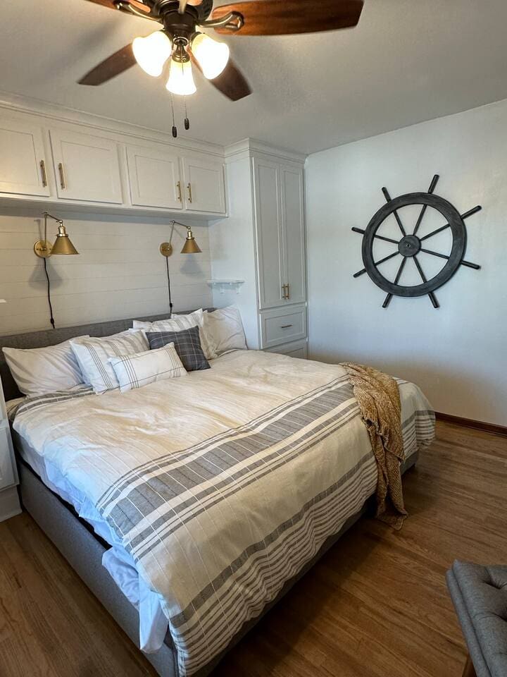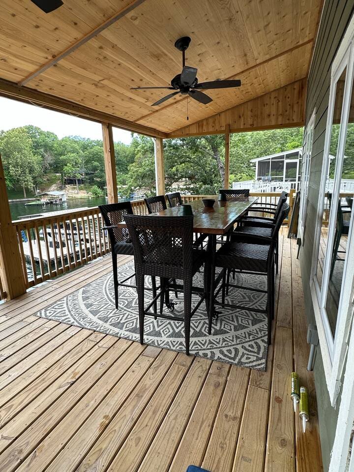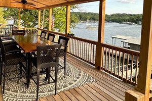 3 Bedrooms • 2 Bathrooms 2 Baths • Sleeps 6-10Cove-Out Cottage is the ultimate “home away from home” lakefront property. It's nestled back in a small, peaceful neighborhood with a great view of the active Buck Creek Cove at the 8MM. Outside of the cozy home lies a huge back deck, a new patio, a yard area with a fire pit, and gentle-grade sidewalk access to a large dock where you’ll find the Lost Anchor tiki bar. Located on the “West Side” of the lake, the house is right near a golf course, popular lakefront bars, and great restaurants.
