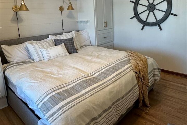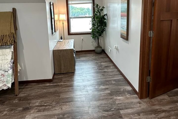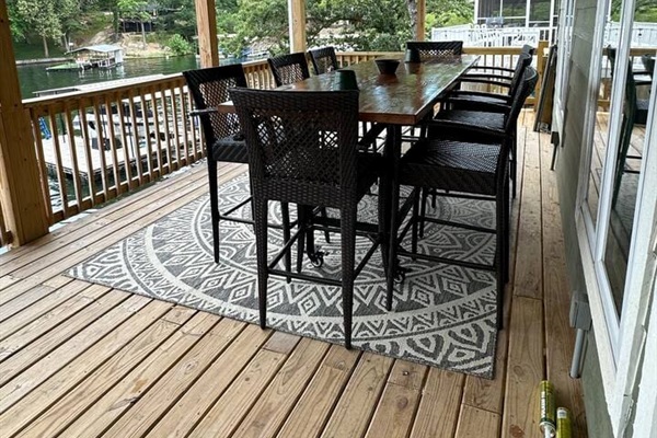 Just a few steps down from the newly paved back patio, you’ll find the walkway to the ultimate lake-fun zone. The dock is home to the Lost Anchor tiki bar, with a full-size fridge and lots of comfy seating. There are multiple areas to lounge in the sun and swim, with one set of stairs and one ladder leading into the water. There is a 14x32 boat slip, a wave runner lift, and a flat-bottom boat lift available for guest use as well. In the cool evenings, you can enjoy the gas fireplace table!! Please note that on busy weekends and holidays, the dock can get wavy due to the Buck Creek traffic.